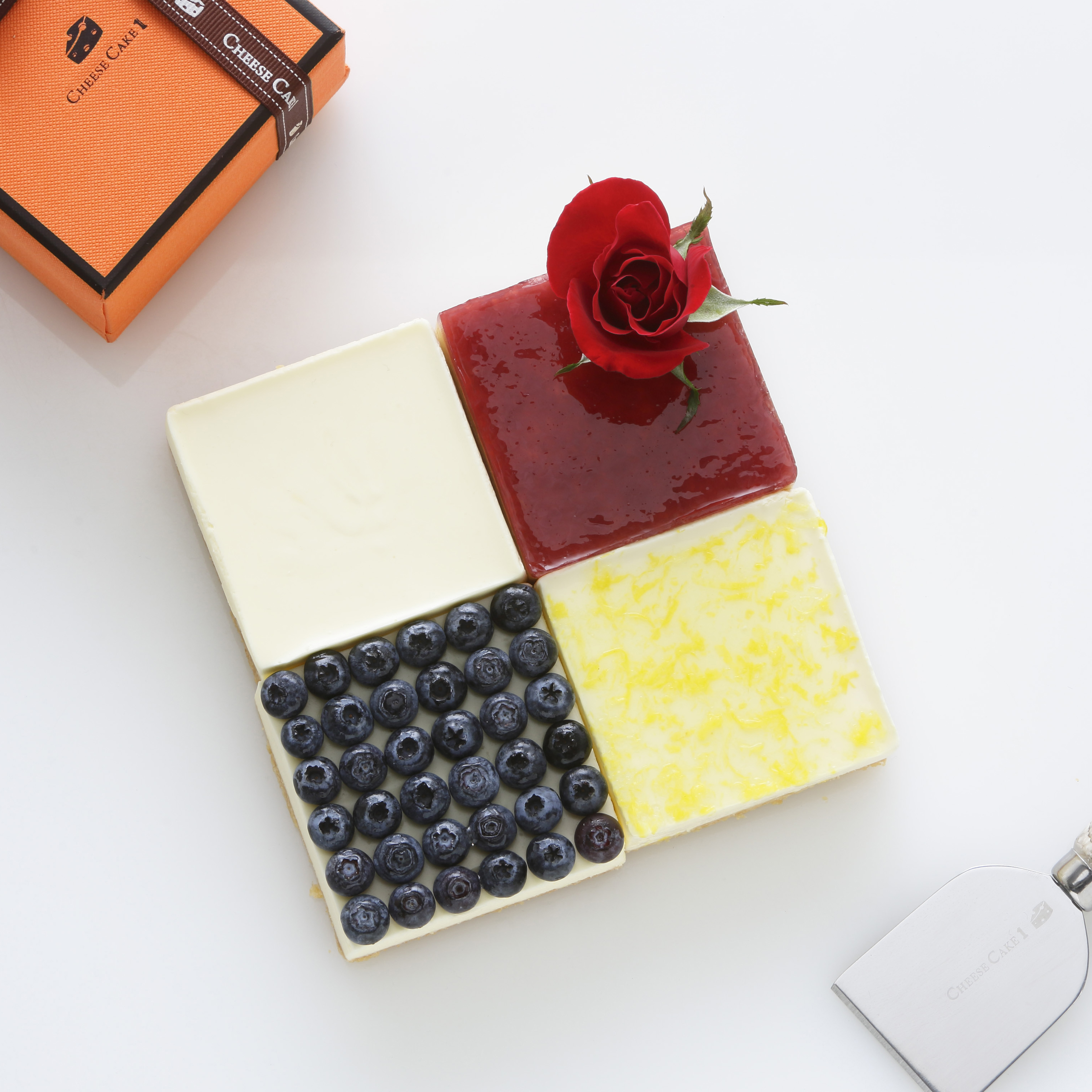 【四個女生的故事】四拼組合生乳酪蛋糕:能同時品嘗到原味、檸檬、藍莓、玫瑰四款生乳酪蛋糕,其中原味濃郁純粹、檸檬清爽微酸、藍莓果香鮮明、玫瑰淡雅細緻,風味轉換自然和諧;四拼設計特別適合聚會分享、家庭慶祝或送禮選擇,讓每位品嚐者都能找到自己最喜歡的口味,也是 CheeseCake1 宅配生乳酪蛋糕中長年熱銷的人氣款式。